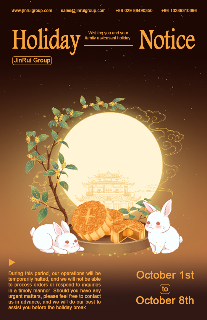 Our company will be closed from October 1st to October 8th for the National Day holiday, and normal operations will resume on October 9th.